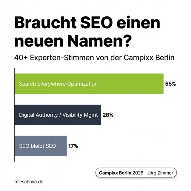 Einige Kollegen wollen noch weiter gehen und komplett weg von der “Suche” als definierendes Element. Begriffe wie “Digital Authority Management” oder “Visibility Engineering” fielen. Diese klingen in der C-Suite wie strategische Investments, nicht wie technische Ausführung.