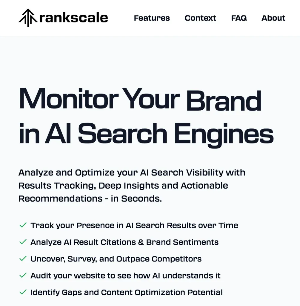 - Rankscale trackt Sichtbarkeit in 17 verschiedenen LLMs – jedes Modell bewertet deine Marke unterschiedlich, dein Blindflug hat ein Ende.